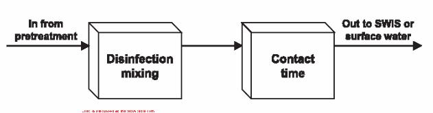 The product of the contact time and disinfectant residual concentration (Ct) is often used as a parameter for design of the system. The contact basin should be baffled to ensure that short-circuiting does not occur.